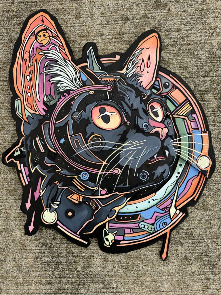 You can view the full exhibit, Graphic & Illustration from January 3 to February 1, 2025 in the Judge Stone House gallery. The Noblesville Creates on 8th campus is open Wednesday through Friday, 12:00 to 5:00 p.m., and Saturdays 10:00 a.m. to 5:00 p.m.