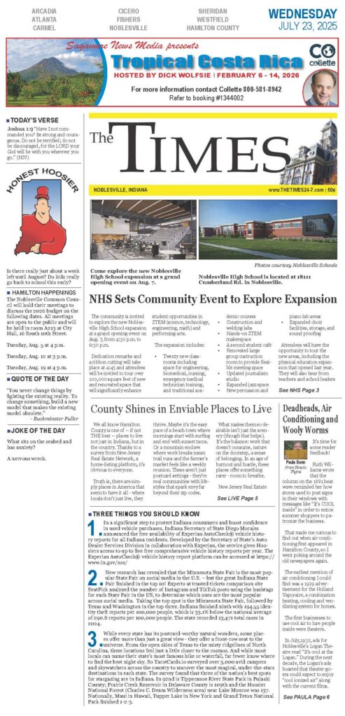 The community is invited to explore the new Noblesville High School expansion at a grand opening event on Aug. 7, from 4:30 p.m. to 6:30 p.m. Dedication remarks and a ribbon cutting will take place at 4:45 and attendees will be invited to tour over 100,000 square feet of new and renovated space that will…