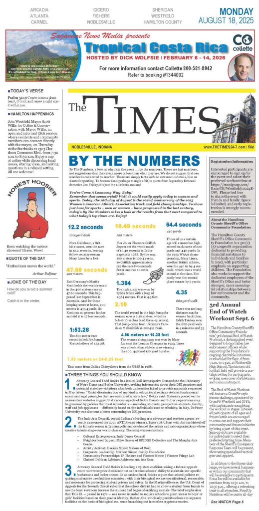 The Hamilton County Sheriff’s Office Community Foundation’ 3rd Annual End of Watch Workout, a distinguished event designed to honor fallen law enforcement officers while supporting the Foundation’s ongoing charitable initiatives, is scheduled for Sept. 6 from 7 a.m. to 2 p.m. at Noblesville High School. The historic old football field will provide a nostalgic setting…