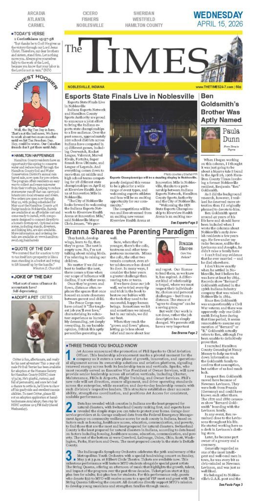 From Time to Thyme By Paula Dun When I began working on this column, I I thought it was just going to be about a bizarre tale I found in the April 26, 1906 Hamilton County Times involving a former Noblesville resident, Benjamin “Ben” Goldsmith. As I did the background research, however, I realized he…